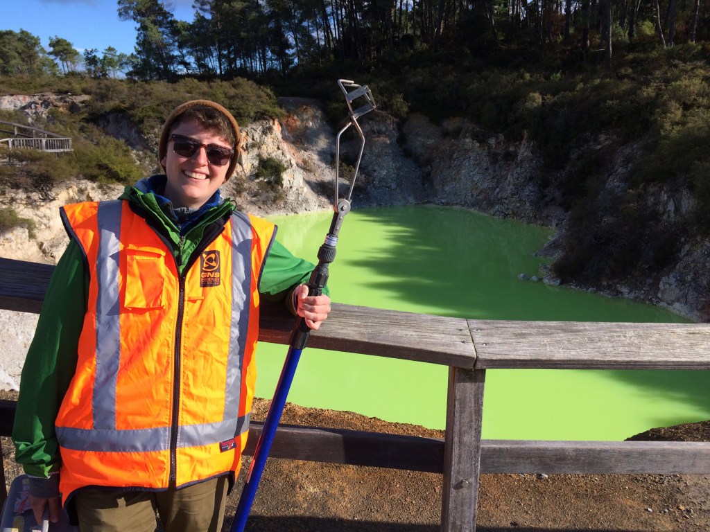 Hannah presenting a poster at FiLMS, 2023Hannah and Rachel attending FiLMS and meeting microbiome researchers in the CNY areaAngela, sampling geothermal springs across the Taupo Volcanic Zone, New Zealand